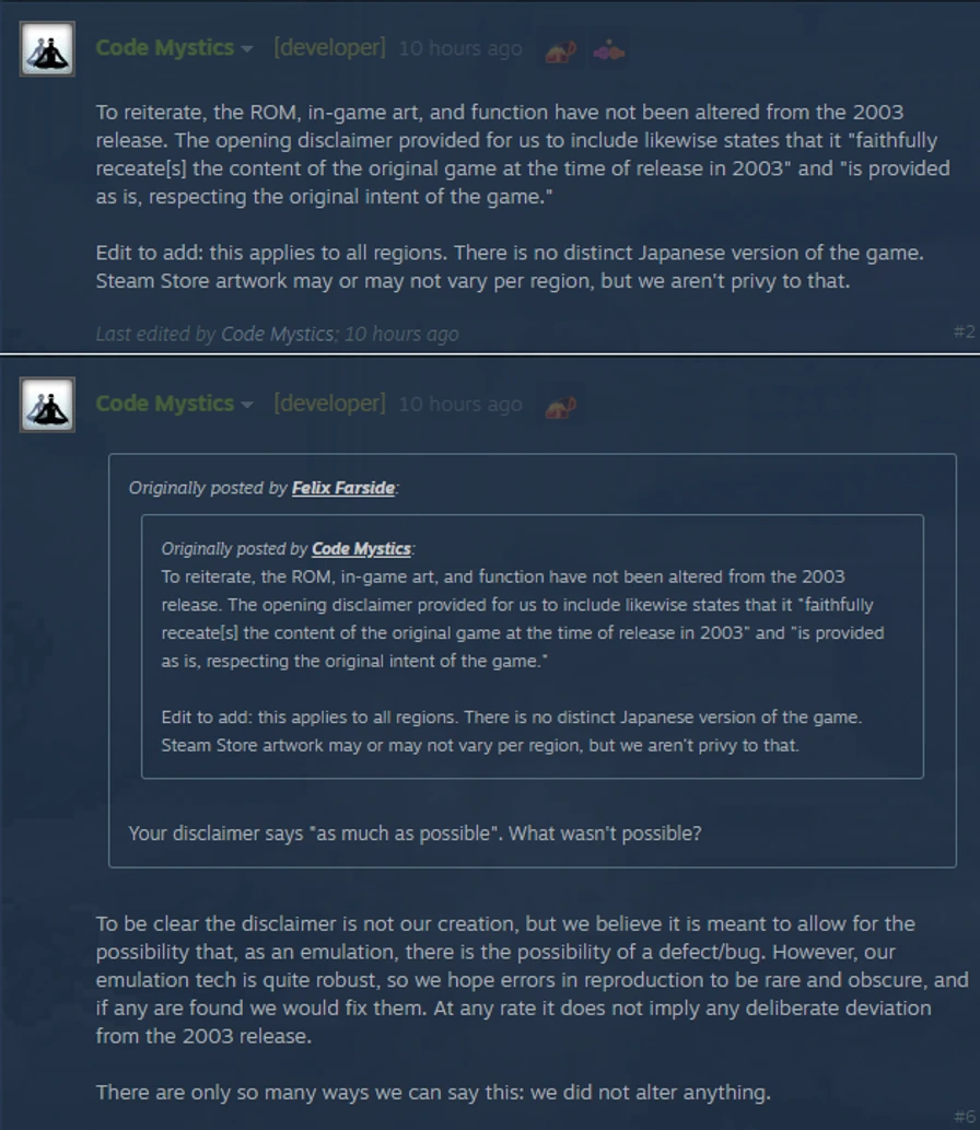 Also, Code Mystics (the developers of this version of the game) decided to add that disclaimer in the game’s boot up.